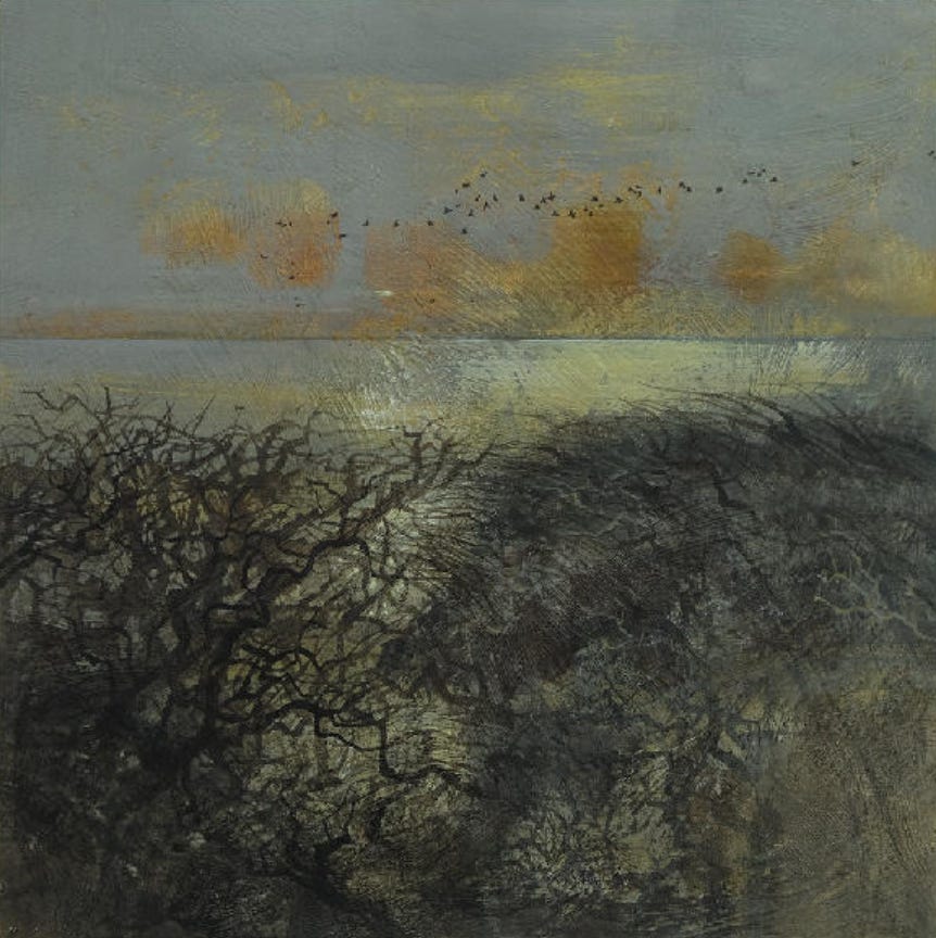 Und als sei das Gemälde erst jetzt wirklich geworden, hält es meinen Blick fester, länger, zieht ihn tiefer hinein. Warum erlebe ich das so? Ist das allgemeingültig? Und wenn ja, warum?